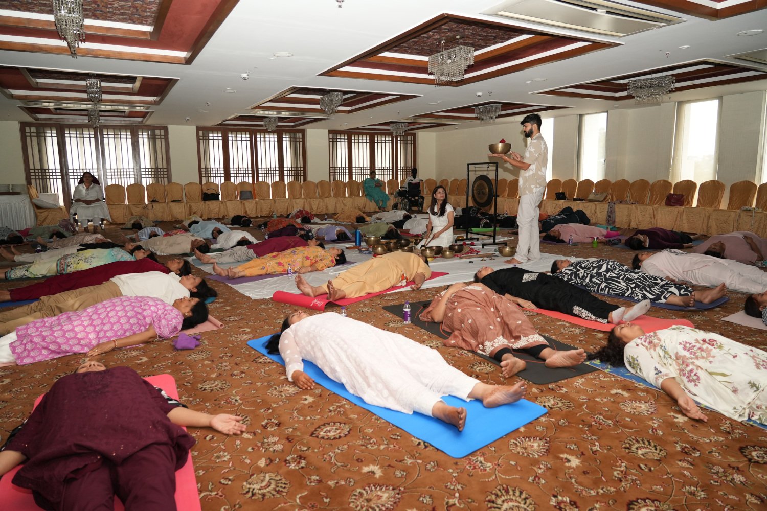 Structured sound healing sessions for organizations seeking stress reduction, productivity enhancement, and employee wellbeing.